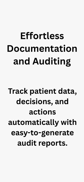 Track patient data, decisions, and actions automatically with easy-to-generate audit reports.