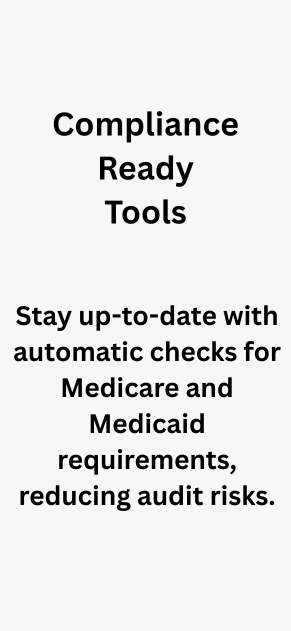 Stay up-to-date with automatic checks for Medicare and Medicaid requirements, reducing audit risks.